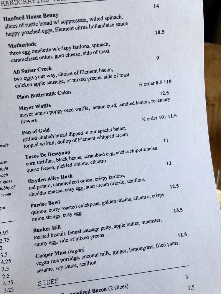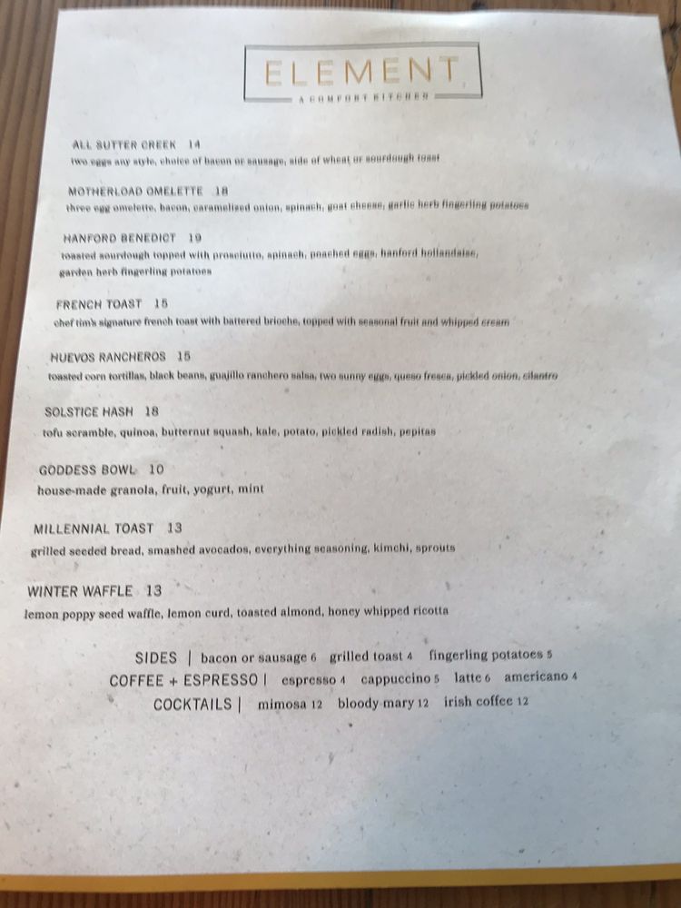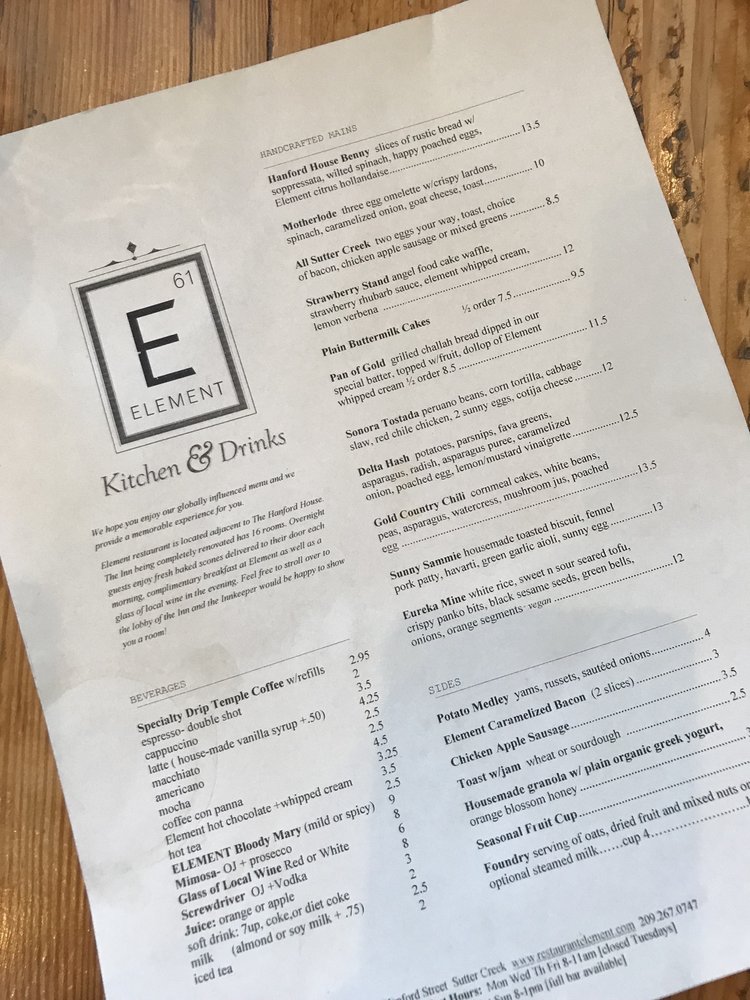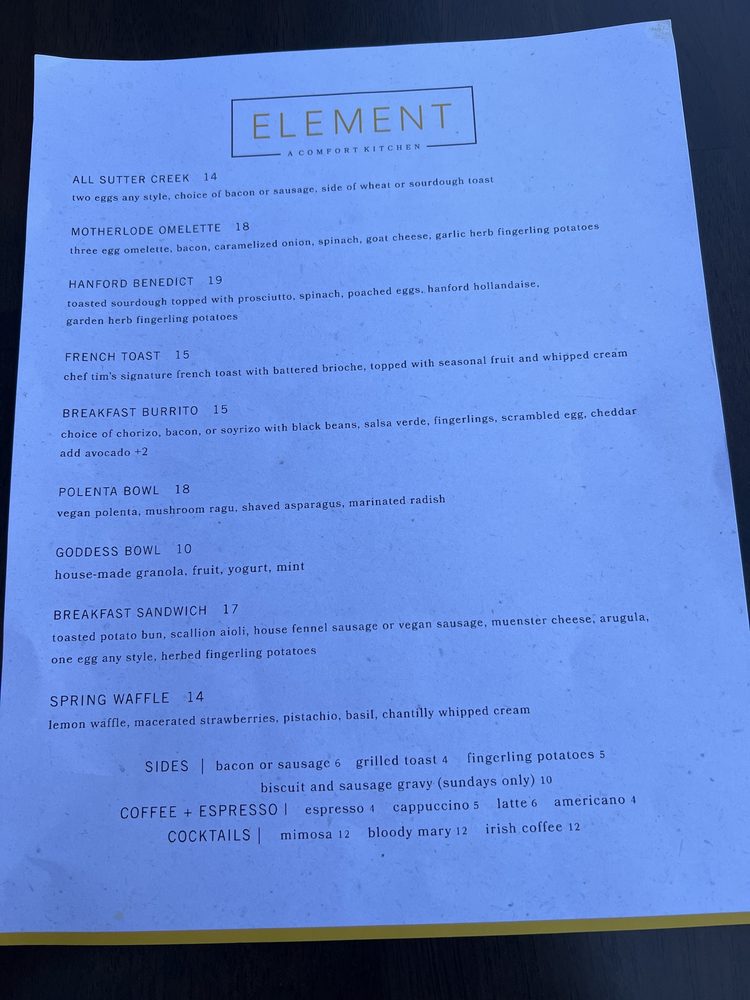 Welcome to Element, a gem nestled in Sutter Creek, CA, offering a delightful blend of New American cuisine. At 61 Hanford St, this restaurant captivates with its inviting atmosphere and a menu that truly evolves with the seasons. Each dish is crafted with care, ensuring an unforgettable dining experience.