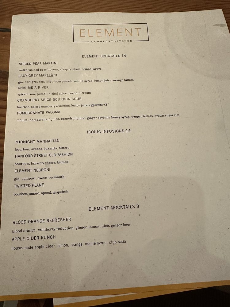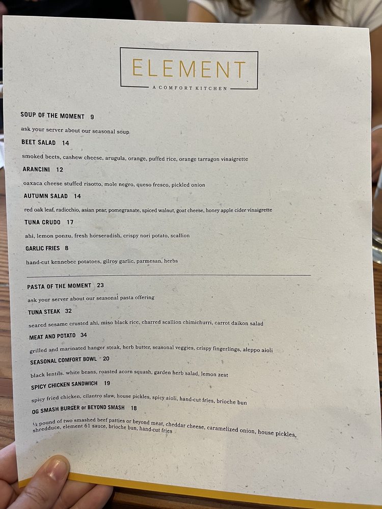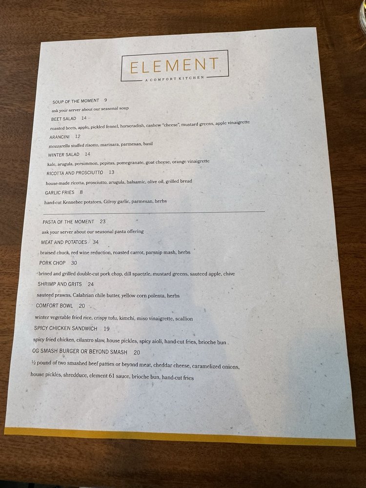 With enthusiastic reviews praising the quality of the food and attentive service, Element promises not just a meal, but a culinary journey. Experience the fine balance of flavors and the warmth of community at this must-visit destination.